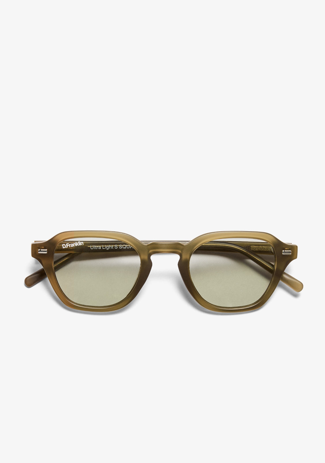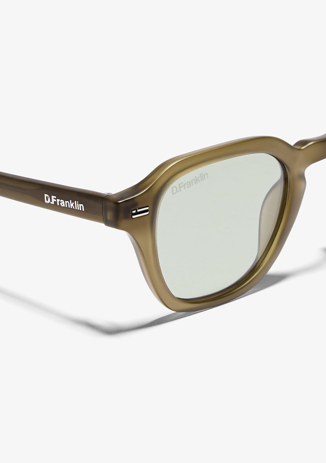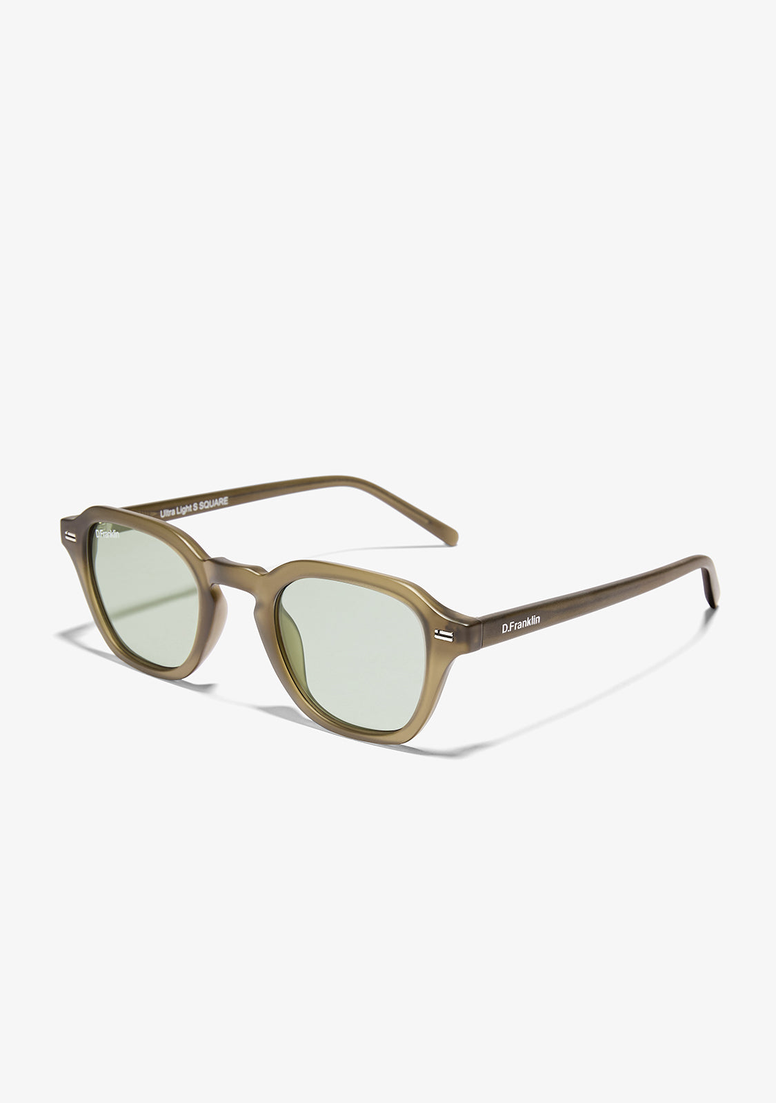 Las gafas de sol Ultra Light S Square Matte Green / Photochromic Green de D.Franklin combinan un diseño contemporáneo con una funcionalidad avanzada. Hechas con material TR90, estas gafas son ligeras pero duraderas, mientras que el acetato de las varillas proporciona un ajuste cómodo y un toque sofisticado.