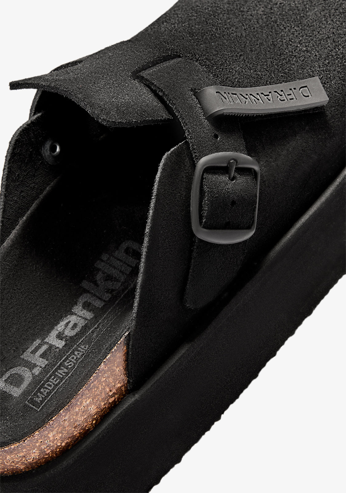 Descubre la combinación perfecta de estilo y comodidad con los zuecos Vibe Sandals Clog Platform Suede Black de D.Franklin. Fabricados en ante, ofrecen un acabado premium que complementa cualquier look.