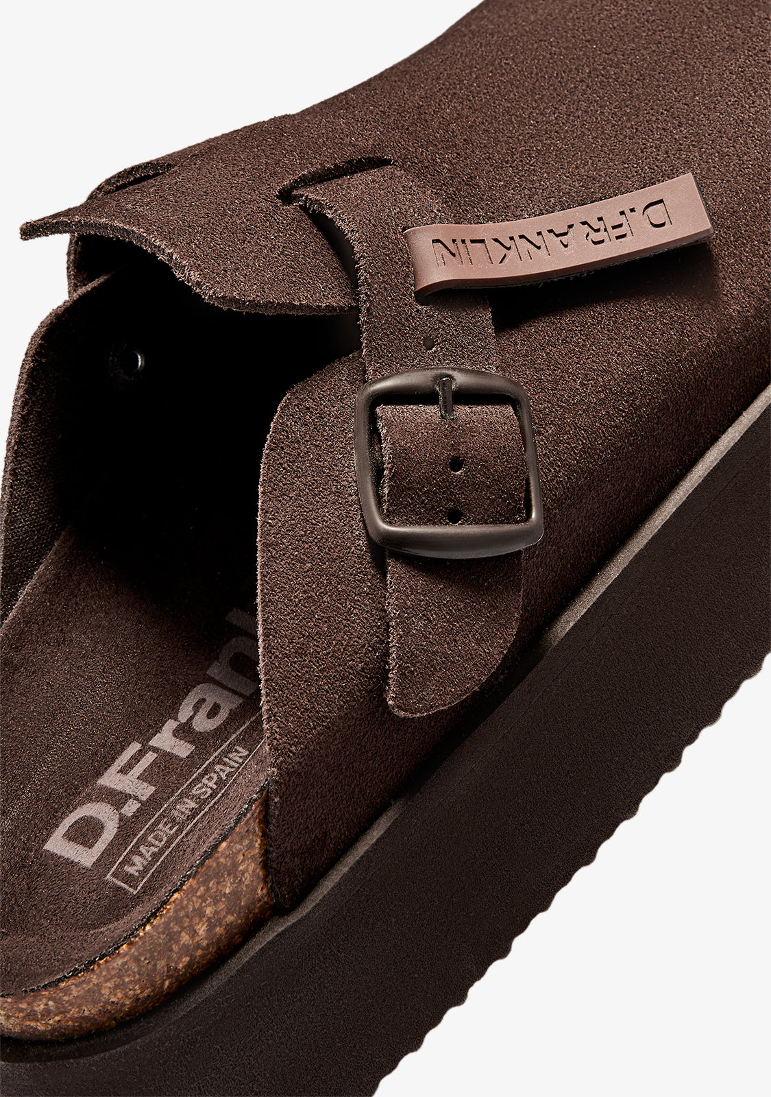Descubre la combinación perfecta de estilo y comodidad con los zuecos Vibe Sandals Clog Platform Suede Chocolate de D.Franklin.