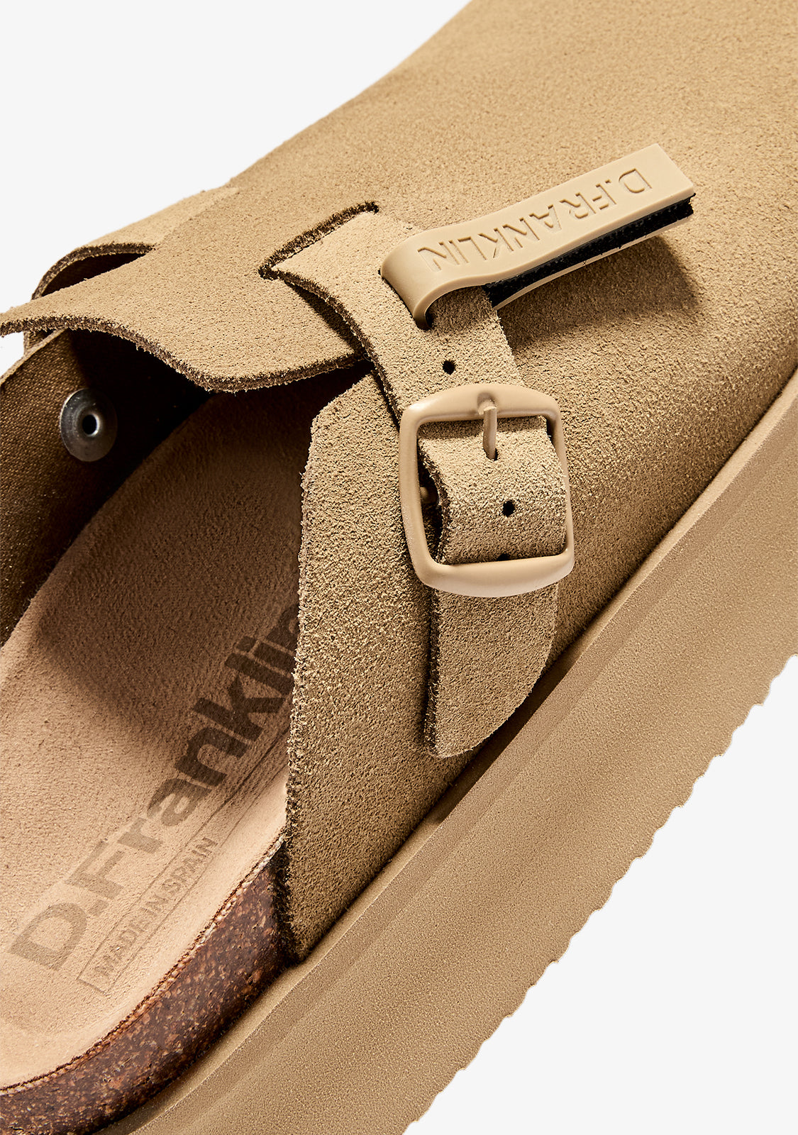 Descubre la combinación perfecta de estilo y comodidad con las sandalias Vibe Sandals Clog Platform Suede Sand de D.Franklin. Fabricadas con ante, ofrecen un acabado premium que complementa cualquier look.