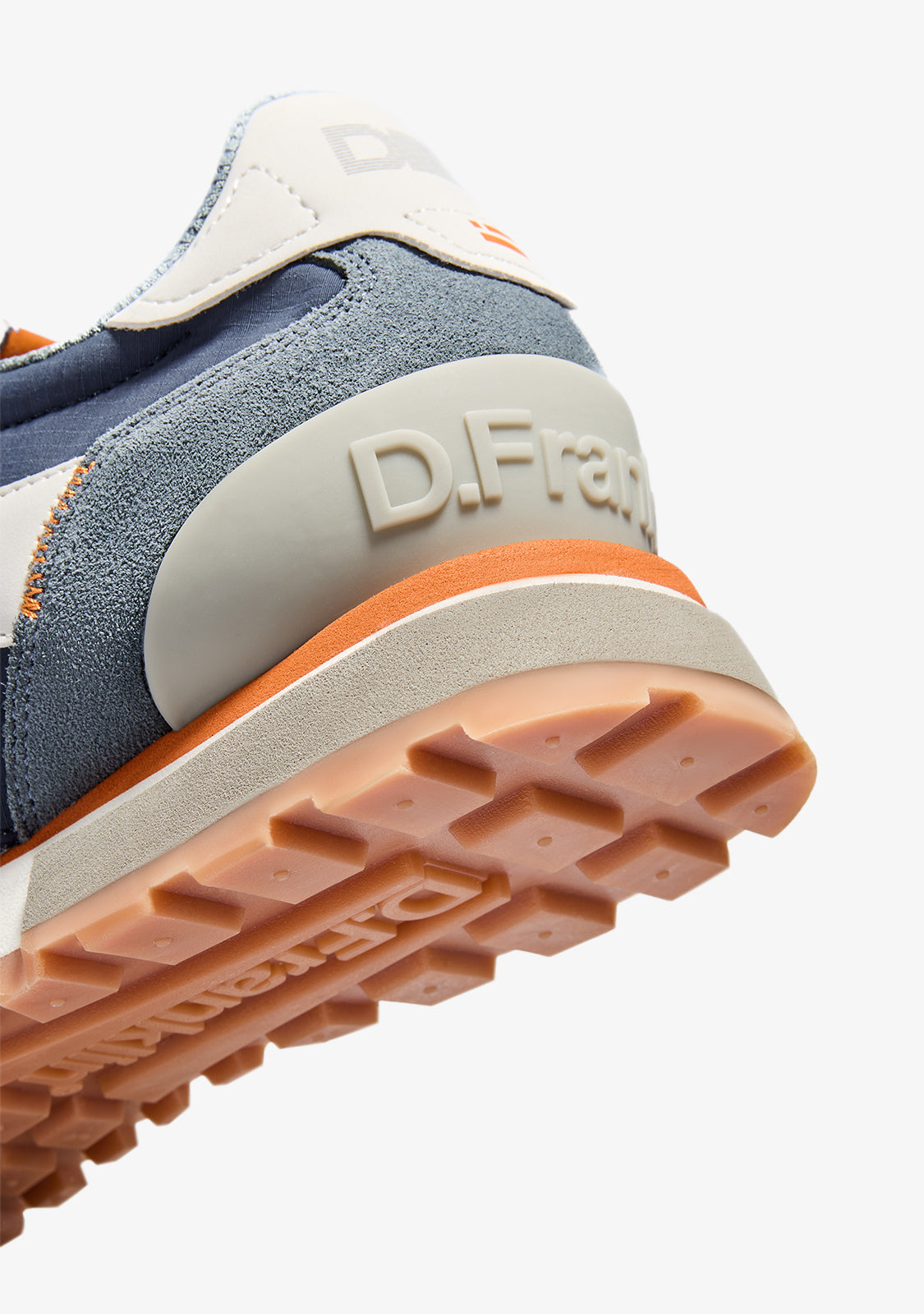 Zapatillas Vibla Navy / Orange con corte asimétrico. Un guiño geométrico al diseño urbano, rematado con llamativos detalles en contraste. Confeccionadas con un exterior mixto que combina textil, sintético y ante, equilibran estructura y flexibilidad para el uso diario. La base azul marino se realza con acentos naranjas para un look lleno de energía.