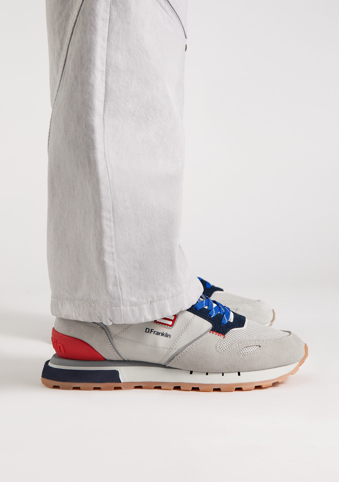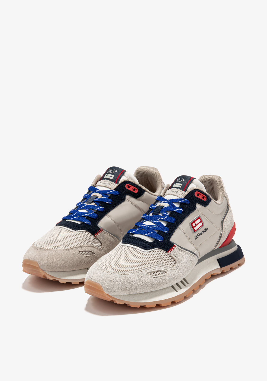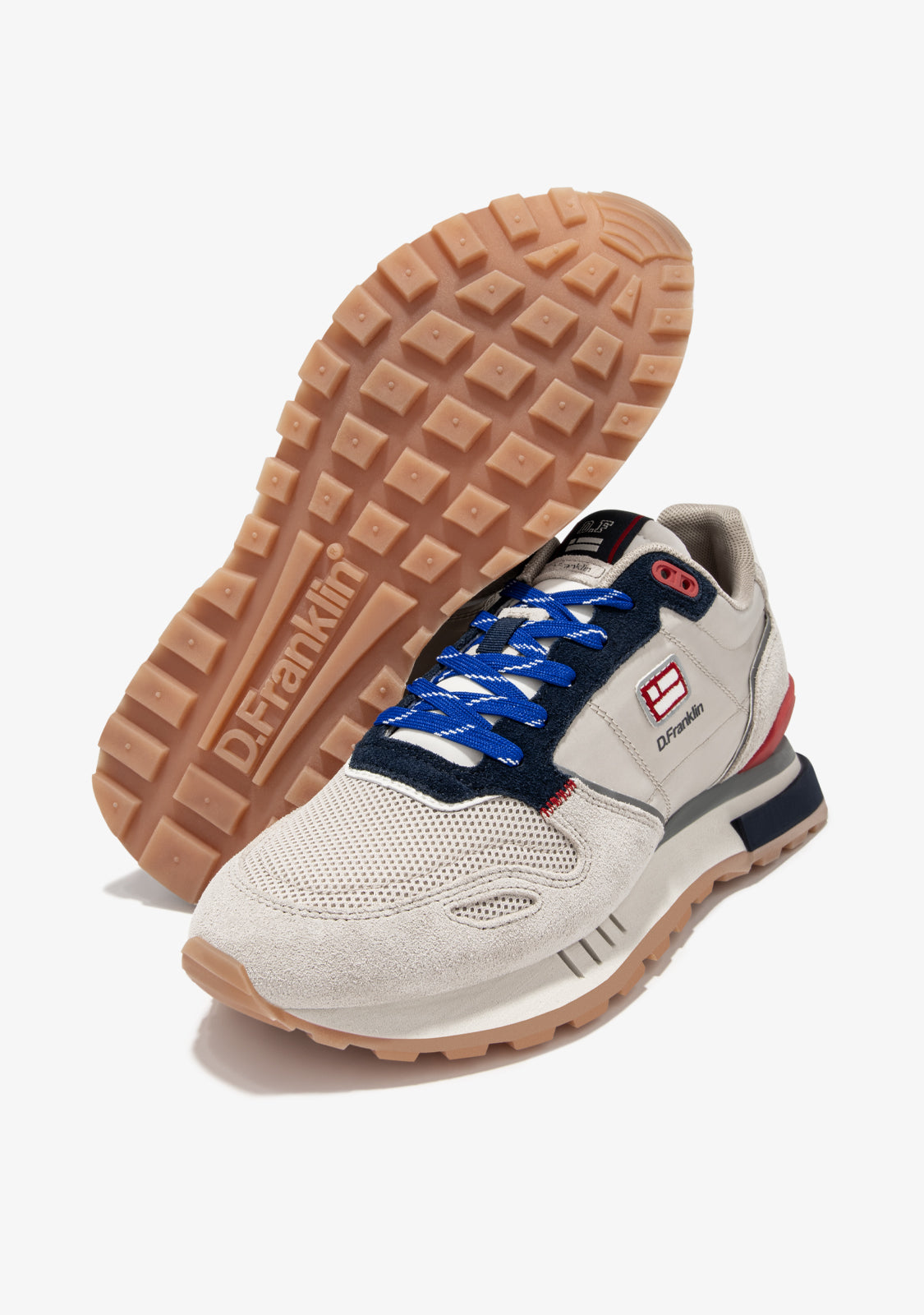 Estas sneakers están confeccionadas con detalles en gris, marino y rojo. Además, también presentan cordones estampados en azul. Cuentan con una suela TR y acabado piramidal para una comodidad y tracción mejorada. La parte de la puntera consta de una pieza mixta que le proporciona mayor flexibilidad. Nuestro emblema se encuentra tanto en el frontal y lateral como en la parte trasera.