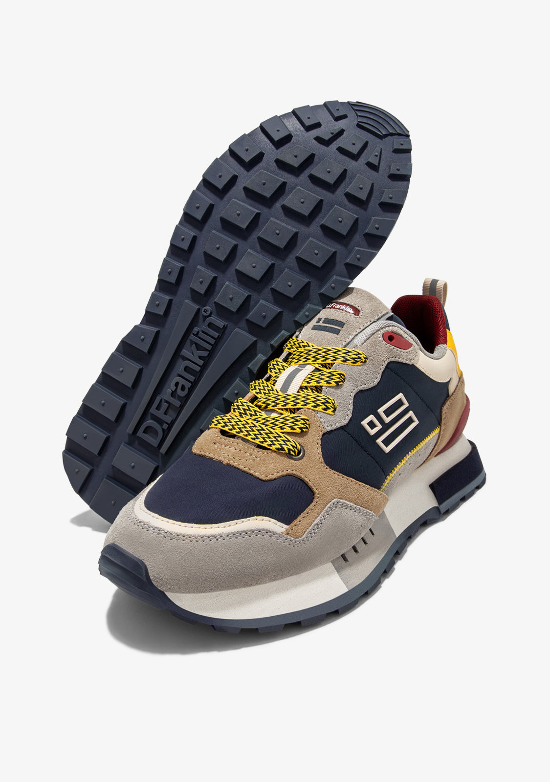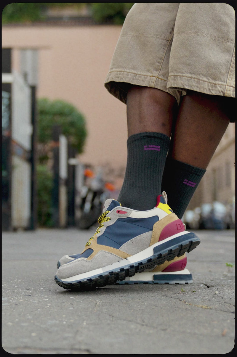 Estas sneakers están confeccionadas con detalles en marino, rojo, amarillo y gris. Además, también presentan cordones estampados en amarillo y negro. Cuentan con una suela TR y acabado piramidal para una comodidad y tracción mejorada. La parte de la puntera consta de una pieza mixta que le proporciona mayor flexibilidad. Nuestro emblema se encuentra tanto en el frontal y lateral como en la parte trasera.